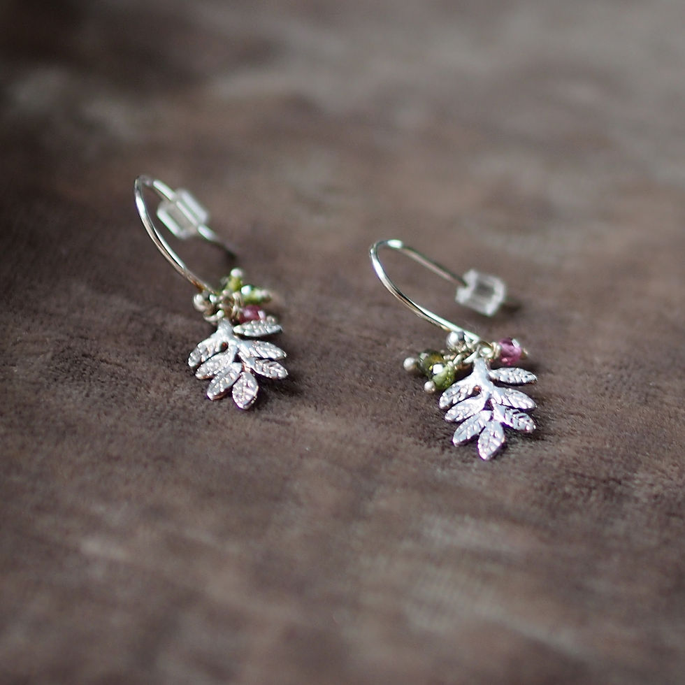 LEAF ON HOOK EARINGS WITH TOURMALINE BERRIES